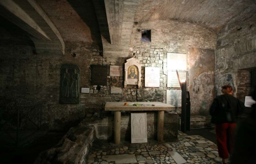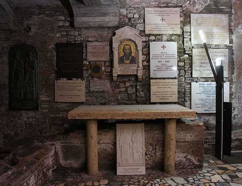 В IX веке в Сан-Клементе были перенесены мощи папы Климента, обретённые святыми Кириллом и Мефодием в Крыму и привезённые равноапостольными братьями в Рим. В 867 году папа Адриан II совместно с Кириллом и Мефодием перенесли мощи Климента в посвящённую его памяти базилику. 14 февраля 869 года Кирилл скончался в Риме и был, по желанию Адриана II и римского народа, погребён в Сан-Клементе.