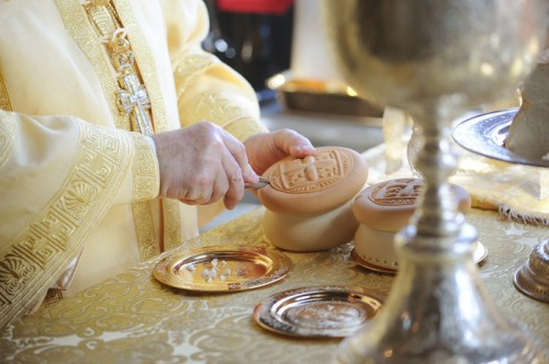 Приготовление начинается во время проскомидии. Проскомидия - это часть Литургии, во время которой приготовляют хлеб и вино для таинства. Для проскомидии употребляется пять особых просфор.