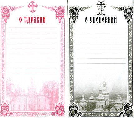 Первая записка, подаваемая нами, - "О здравии".
