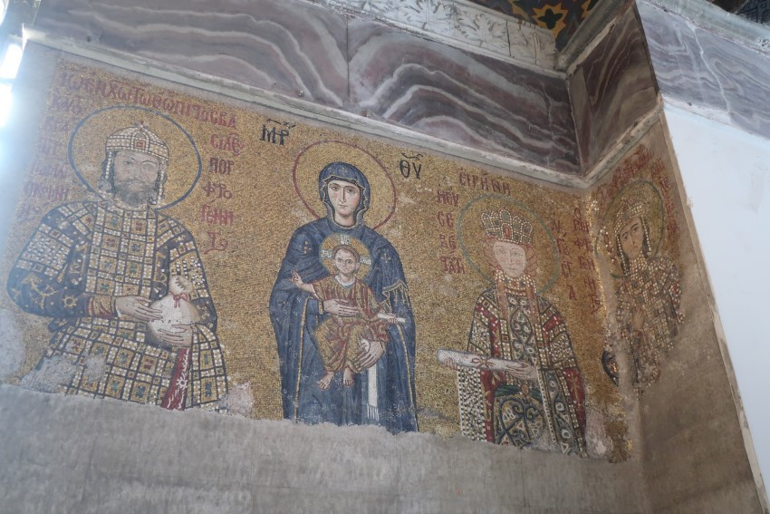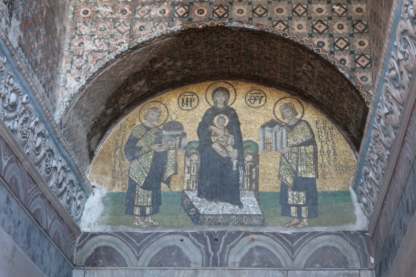 Во времена Византийской империи собор находился в центре Константинополя рядом с императорским дворцом. В храме Святой Софии проходили обряд помазания на царство византийские императоры; по сей день сохранился в центре зала мозаичный круг, в который вступали претенденты на престол.