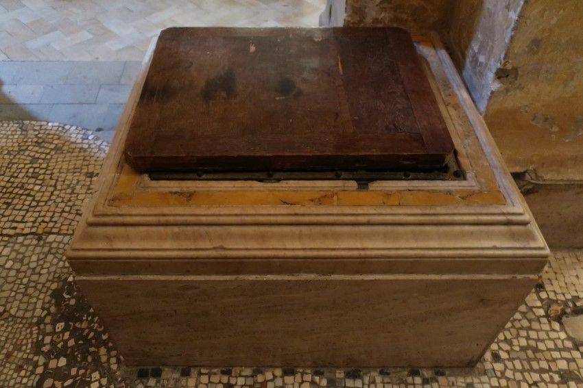 Слева от главного престола, в приделе святого Петра, находится древняя доска, на которой священнодействовал святой апостол Петр. Здесь же есть колодец, в котором сокрыто 3000 мученических тела.