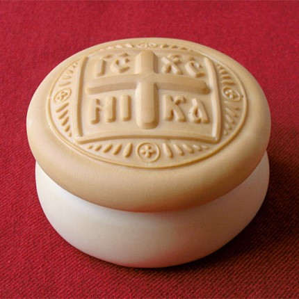 Из первой просфоры после особых молитв священник вырезает середину в форме куба - этой части просфоры придано название Агнец. Эта просфора, "агничная", полагается на дискос, круглое блюдо на подставке, символизирующее ясли, в которых родился Спаситель. Агничная просфора и служит собственно для Причащения.