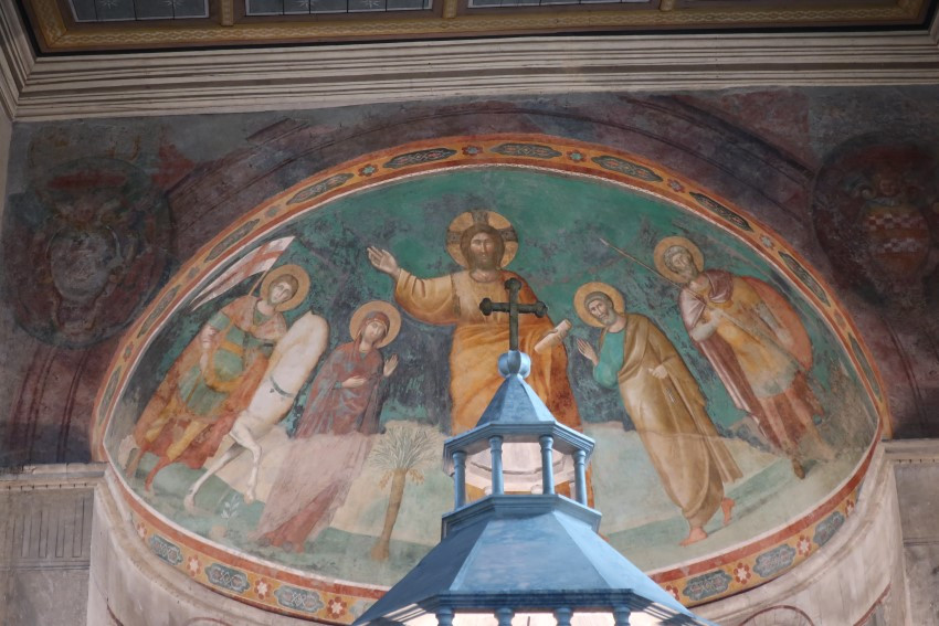 Во время археологических раскопок 1923—1925 годов под правым нефом были обнаружены остатки каменного строения II—III веков новой эры. В V—VI веках это строение было значительно расширено и стало диаконией — монастырём, насельники которого занимались оказанием помощи бедным и обездоленным. На уровне 30 см ниже пола современного храма обнаружены остатки первоначальной церкви, помещений для хранения зерна, размещения бедных, а также келий монахов.