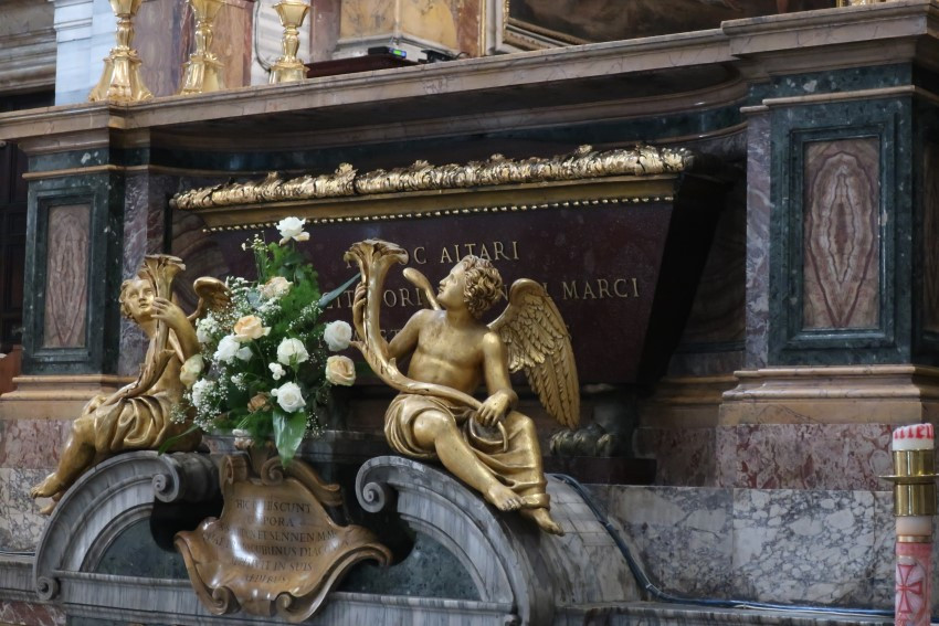 По преданию в 62 году святой евангелист Марк со слов святого апостола Петра написал Божественное Евангелие. Писал он его в небольшой оратории недалеко от капиталийского холма. В 336 году римский папа Марк (336) с помощью императора Константина возвел на этом месте базилику. В 828-44 годах папа Григорий IV (827-844) украсил ее мозаиками и привез в крипту много мощей святых мучеников из катакомб.