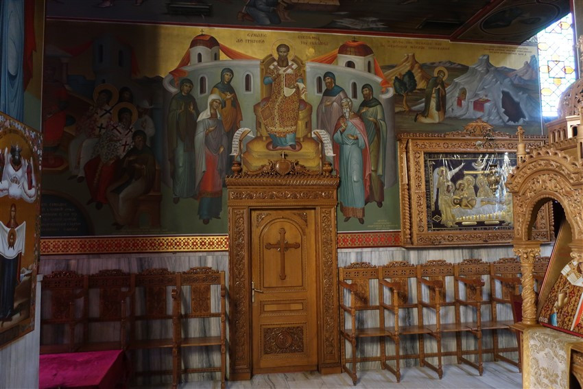 Мощи святителя Григория Паламы покоятся в красивой серебряной раке слева от входа в храм.