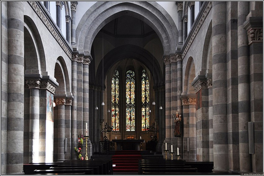 В XII веке церковь была перестроена в романском стиле, в XIV веке в церкви был в готическом стиле перестроен хор и была пристроена готическая капелла. В XV веке над средокрестием был сооружён шатровый купол.