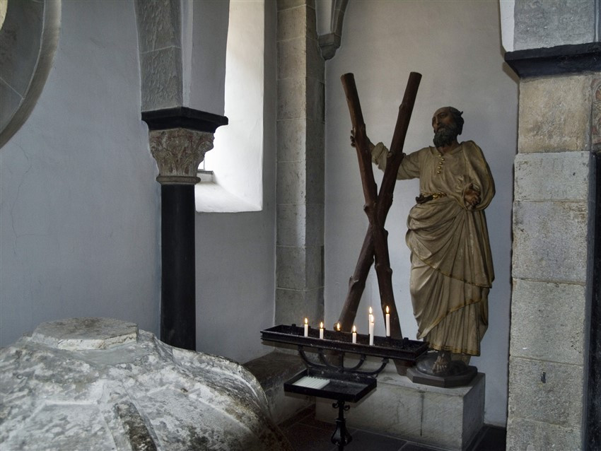 Храм Святого Апостола Андрея расположен рядом с Кёльнским собором. Церковь была построена еще в X веке, и с тех времен является местом паломничества верующих. Тут находятся мощи святого Андрея Первозванного, апостолов Иуды Фаддея и Симона Зилота, Маккавейских мучеников и частица Креста, на котором был распят Иисус Христос. Здесь же хранится православная икона Девы Марии «Страстная».